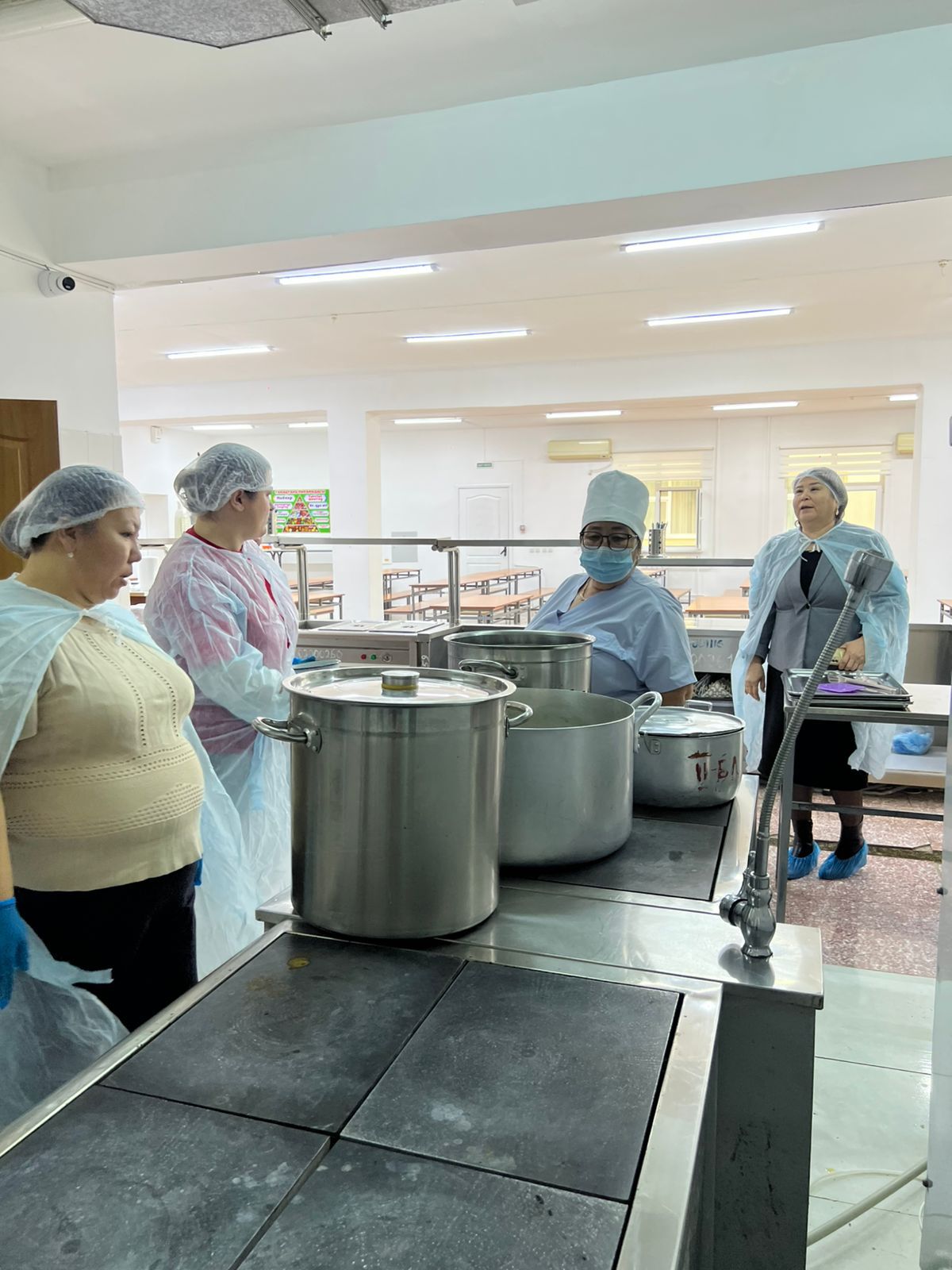 Тексеру барысында асхана жұмысы, тамақтың дайындалу барысы және оқушылардың тамақтану жағдайы бақылаудан өтті.
