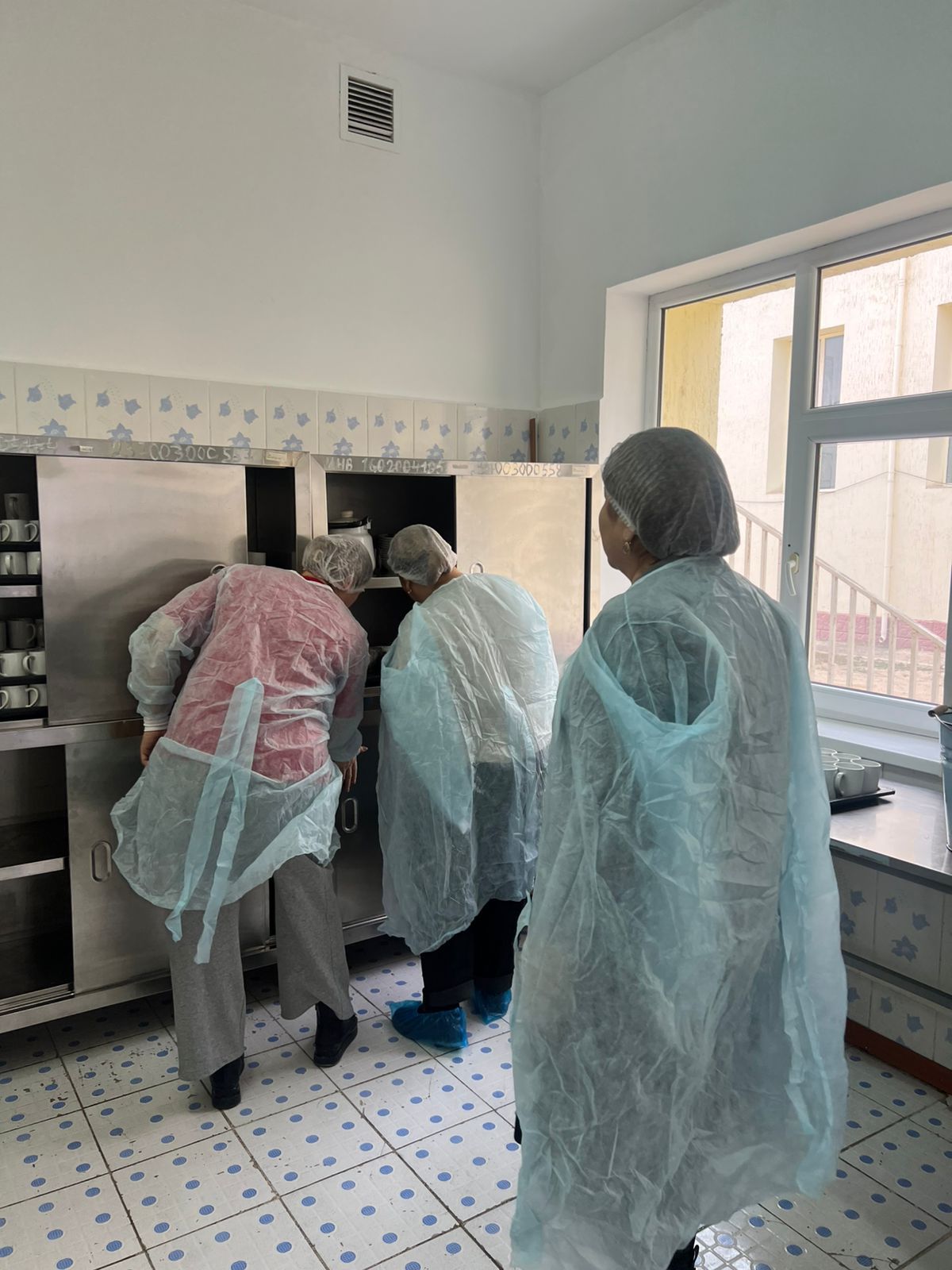 Бүгін аудандық комиссия мектеп асханасының санитарлық талаптарға сәйкестігін, тағам сапасын және қауіпсіздік ережелерінің орындалуын тексерді.